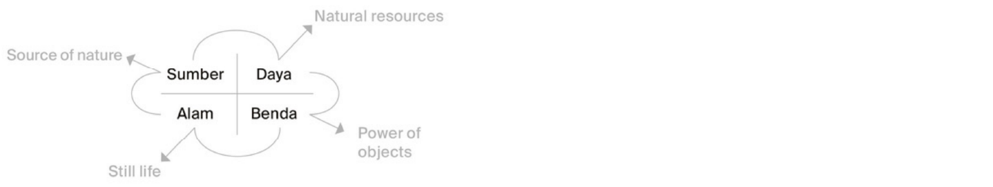 Daya Benda is organized in collaboration with Kunsthalle Basel, where the artist’s exhibition Sumber Alam is on view concurrently. The titles reference two Indonesian idioms referring to natural resources, still life, and object power.